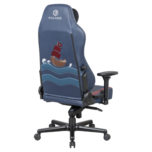 En af de iøjnefaldende egenskaber ved RXGAMER RX-2164 er dens multi-stofkonstruktion. Stolen kombinerer dybblå, vinrøde og brune blandede stoffer, som ikke kun er visuelt slående, men også tilbyder fremragende holdbarhed og komfort. Brugen af lyseblåt ikke-blandet stof med læderbroderi på bagsiden tilføjer et strejf af elegance, mens de sorte ruskinds- og fløjlsstoffer på side- og bagpanelerne sikrer en førsteklasses følelse.