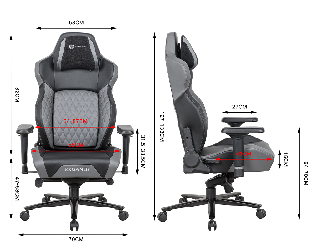 Hovedfarve: sort Anli PU med 0,2 cm polstringsaccent: SD-306 gråt stof med 0,2 cm polstring sort fløjlsstof uden polstring 1088-18 gråt fløjlsstof (bagsiden af nakkestøtten) hørstof uden polstring (midten af nakkestøtten)